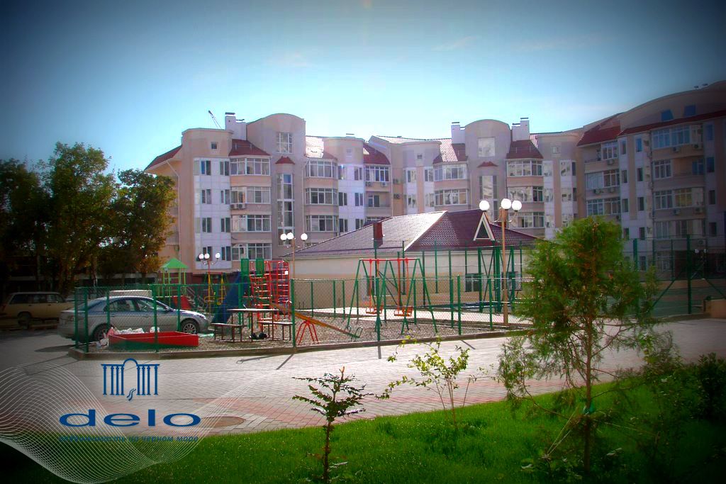 Корпуса здания образуют уютный внутренний двор, где расположены детский городок с качелями и горками, зона отдыха и спортивные площадки. Территория комплекса круглосуточно охраняется, так что Вы сможете быть полностью уверены в безопасности своих детей.
