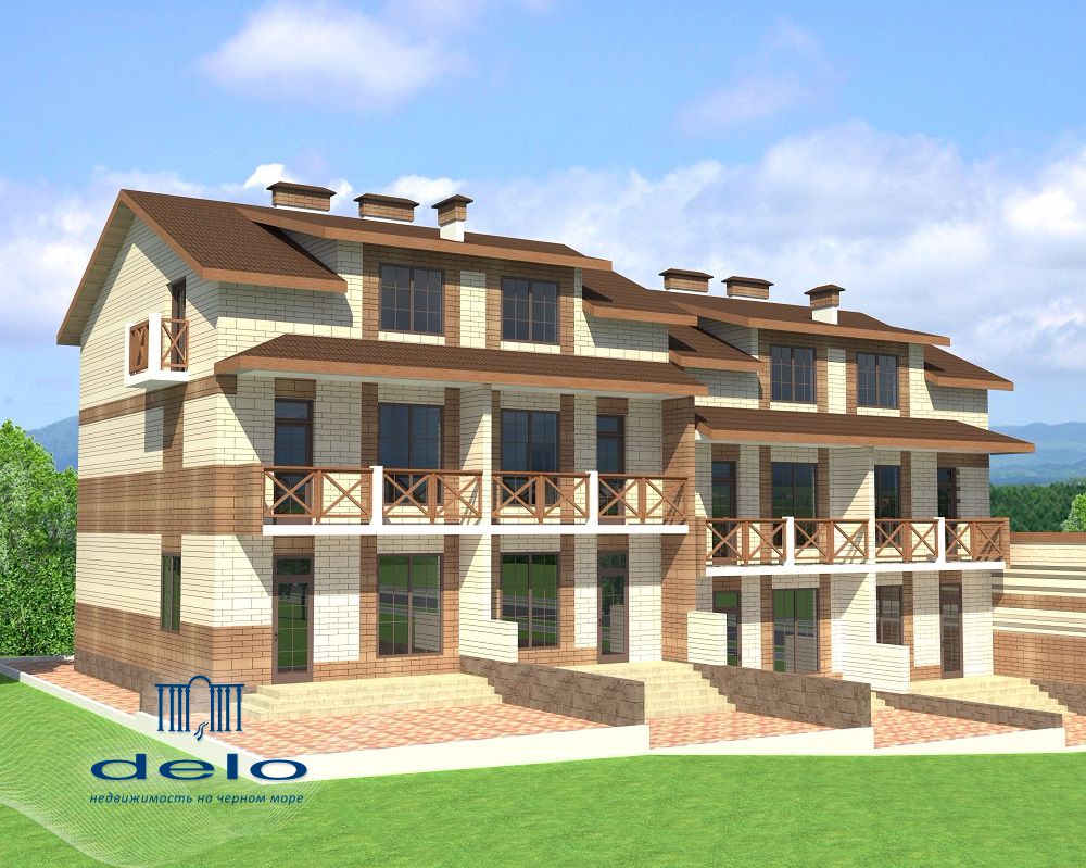 Объект сдан в эксплуатацию, идут работы по благоустройству территории. Таунхаусы построены по современным технологиям: монолит-каркас, блок керамзитный, наружные стены утеплены пенопластом (что определяет его высокие теплоизоляционные качества). Кровля выполнена из цементно-песчаной черепицы фирмы BRASS. Балконы оформлены декоративным брусом и площадка балкона выложена плиткой. В шаговой доступности расположены магазины, школа, санатории.